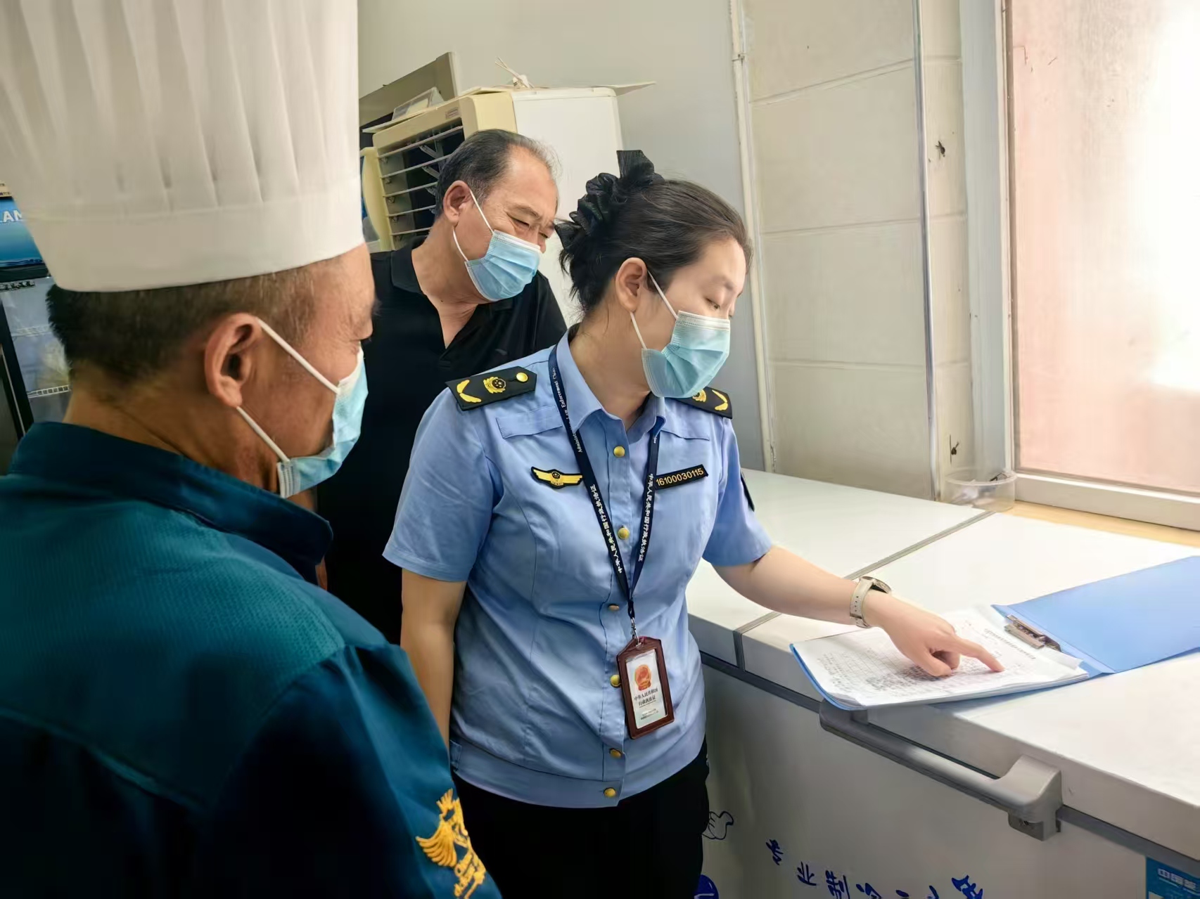 人员健康:查抄组全面检验了食堂从业人员的健康证明,深化取教育部分的协做联动,